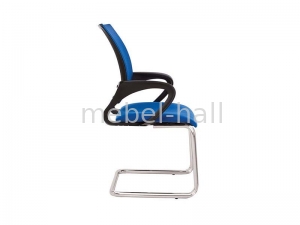 Это удобное кресло с эргономической спинкой для конференц-залов или кабинетов руководителей. Она выполнена из дышащей ткани-сетки, что дает дополнительный комфорт, способствует циркуляции воздуха, при этом надежно поддерживая позвоночник. Кресло расположено на металлической раме, покрытой хромом, надёжно защищающей каркас стула от коррозии. Комплектуется высокой спинкой и пластиковыми подлокотниками.