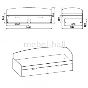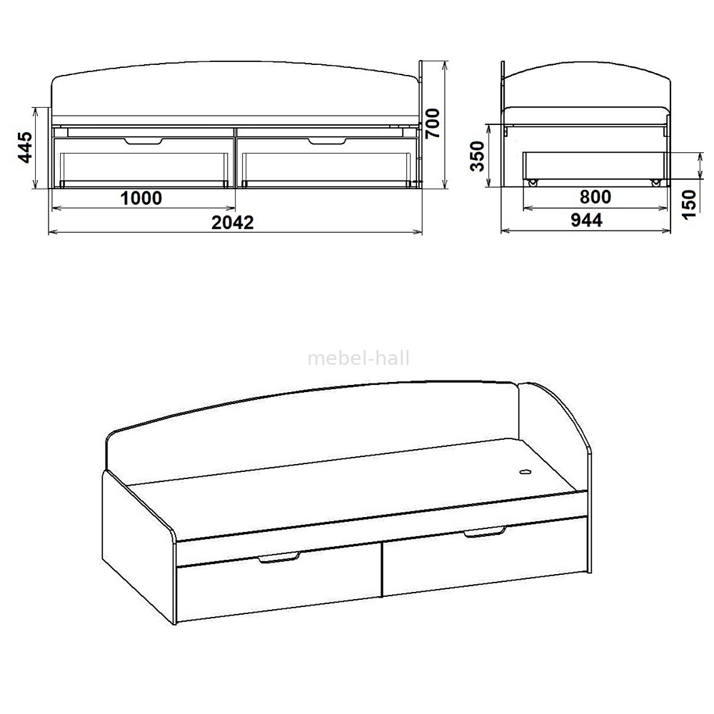 Кровать 90+2С Компанит - универсальная кровать. Воплощает в себе простоту и функциональность одновременно. Наличие двух выдвижных ящиков позволит увеличить пространство для хранения Ваших вещей.