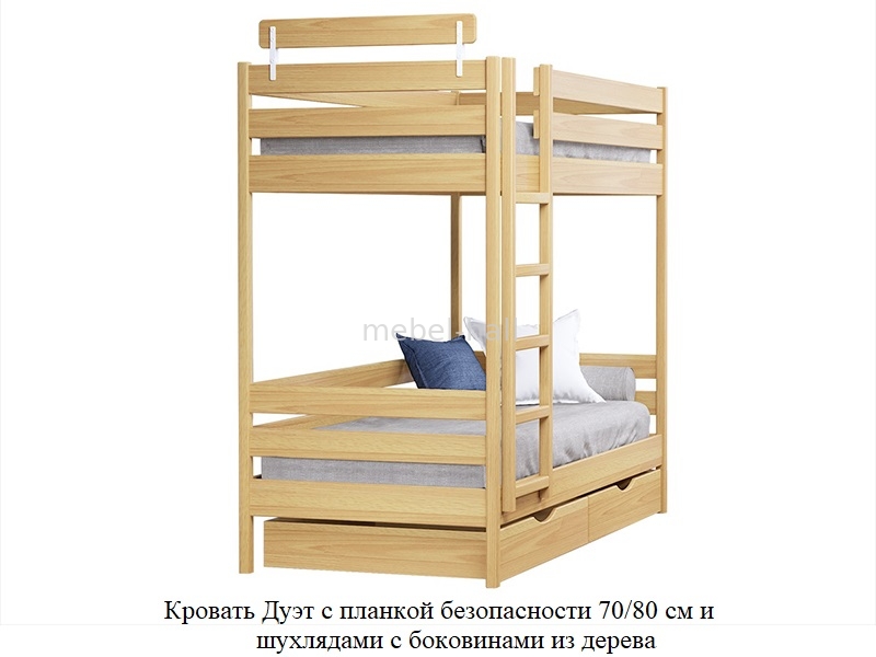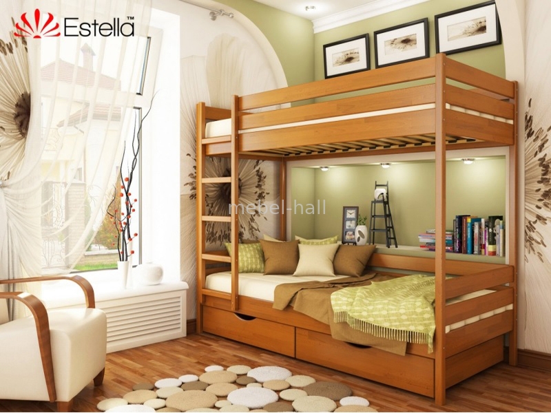 Кровать двухъярусная из натурального дерева Эстелла ДУЭТ 80х200 Буковый Щит ортопедические ламели в комплекте