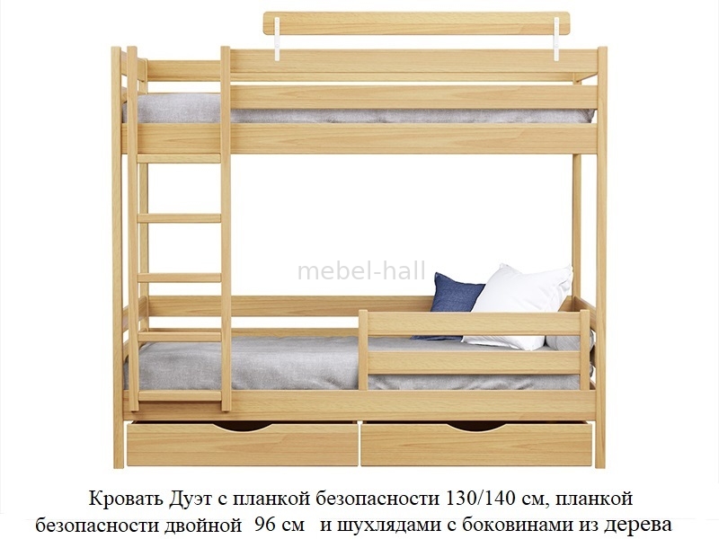 Кровать Дуэт изготовлена из натурального дерева - бука. Это может быть щит бука или массив бука, все зависит от Вашего выбора.