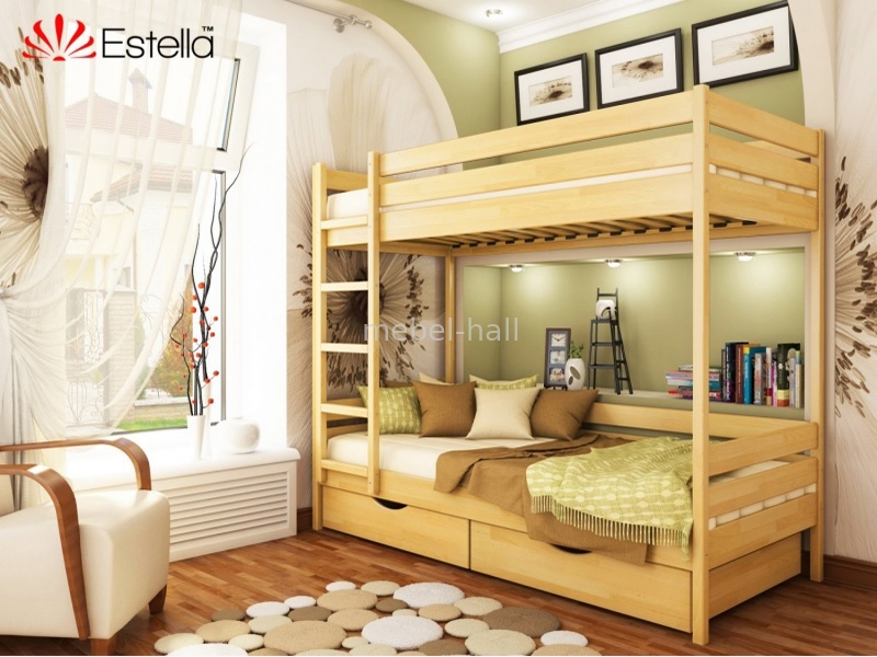 Кровать двухъярусная из натурального дерева Эстелла ДУЭТ 90х200 Буковый Щит ортопедические ламели в комплекте