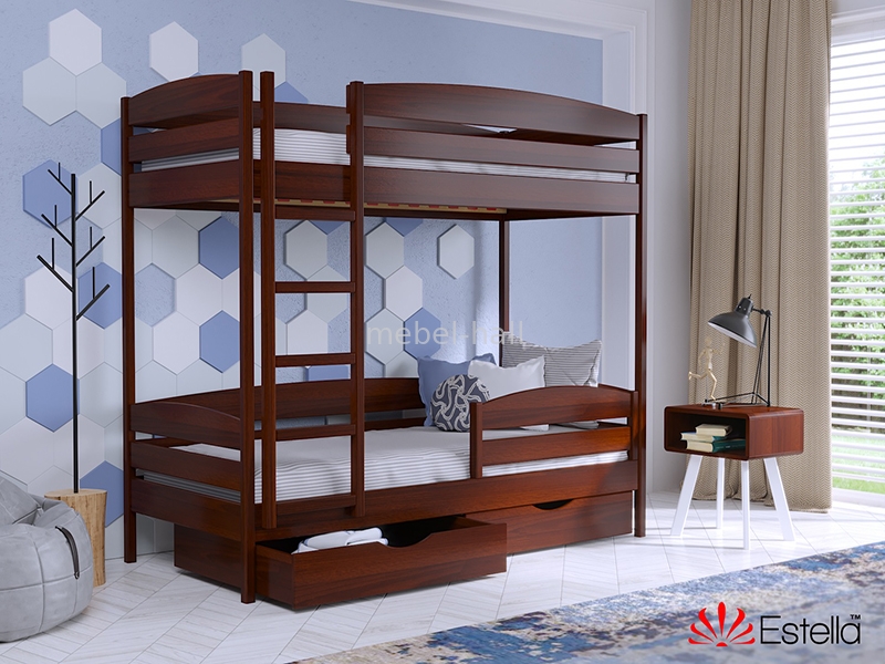 Если у Вас в семье двое детей, то двухъярусная деревянная кровать Эстелла Дуэт Плюс будет лучшим приобретением для детской комнаты. Она отличается надежностью, удобством, комфортом и функциональностью. Ее плавные округлые боковины дополнят детскую спальню уютом и спокойствием.