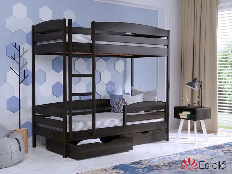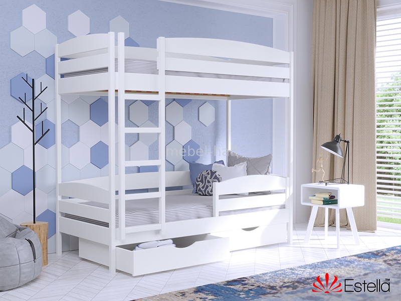 Кровать двухъярусная из натурального дерева Эстелла ДУЭТ ПЛЮС 80х200 Буковый Массив ортопедические ламели в комплекте