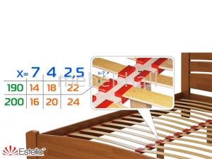 Кровать Диана комплектуется ламелями из буковой фанеры толщиной 8 мм комплект "Стандарт" расстояние между ламелями 4 см 20 шт.
