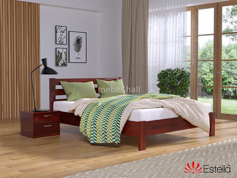 Деревянная кровать Рената совмещает в себе простоту и надежность строгого классического стиля. Дизайн кровати отличается правильностью геометрических линий. Лаконичное сочетание всех элементов этой кровати станет прекрасным дополнением Вашей спальни. Невысокое изголовье и низкое изножье характеризуют удобство и комфорт Вашего спального места. Благодаря классическому дизайну и натуральной цветовой гамме, она будет в центре внимания и в то же время сможет сочетаться с другой мебелью, находящейся в комнате. ТМ Эстелла создали поистине красивую, надежную, уютную и комфортную кровать Рената.