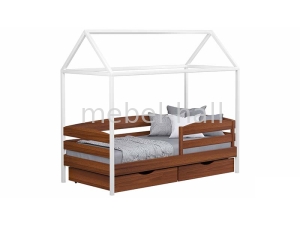 Кровать детская деревянная домик Эстелла АММИ ПЛЮС 90х190 белые ножки Буковый Массив