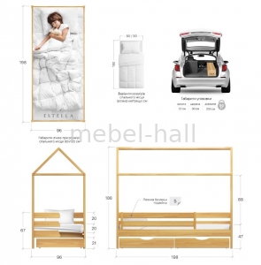 Кровать детская из натурального дерева домик Эстелла АММИ ПЛЮС 90х190 Буковый Щит ортопедические ламели в комплекте