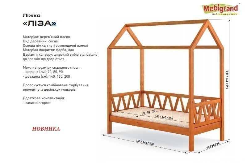 Кровать детская деревянная домик ЛИЗА 80х160 Мебигранд (без шухляд)