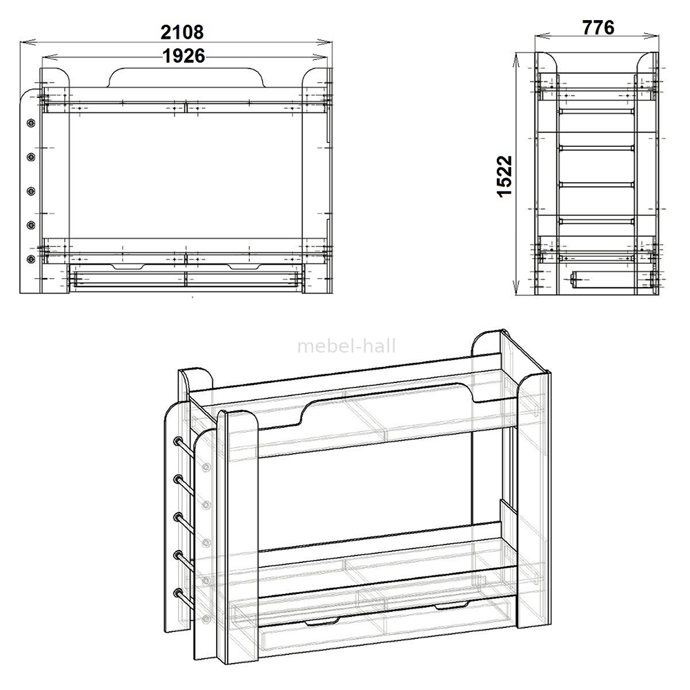 | Вид мебели: | Кровать двухъярусная |