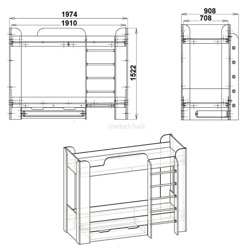 Кровать Твикс Компанит - двухъярусная кровать. Воплощает в себе простоту и функциональность одновременно.