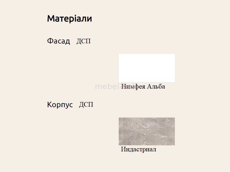 Фасад выполнен из ламинированного ДСП Нимфея Альба.