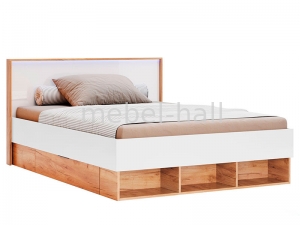 Кровать двуспальная 120х200 см с мягким изголовьем с шухлядами Асти MiroMark ДСП Белый Глянец / Дуб Крафт