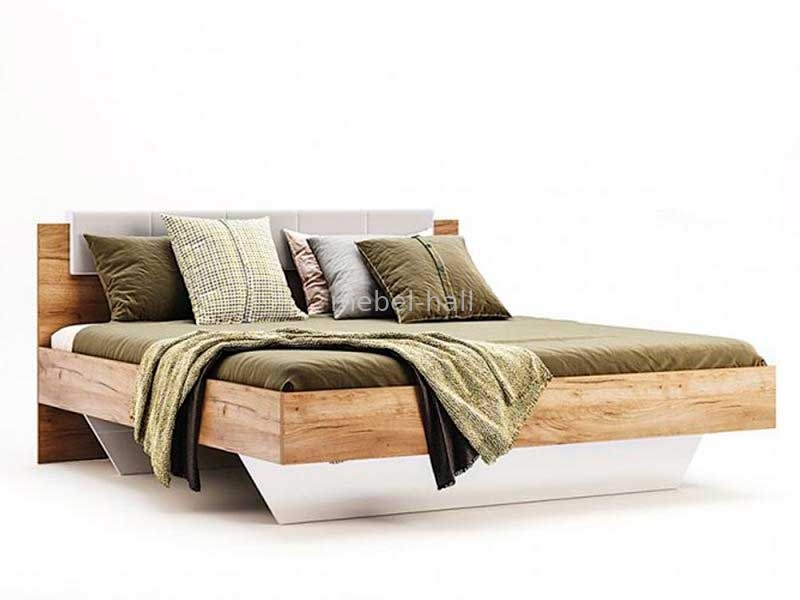 Кровать двуспальная 160х200 см с мягким изголовьем для спальни Асти MiroMark ДСП Белый Глянец / Дуб Крафт