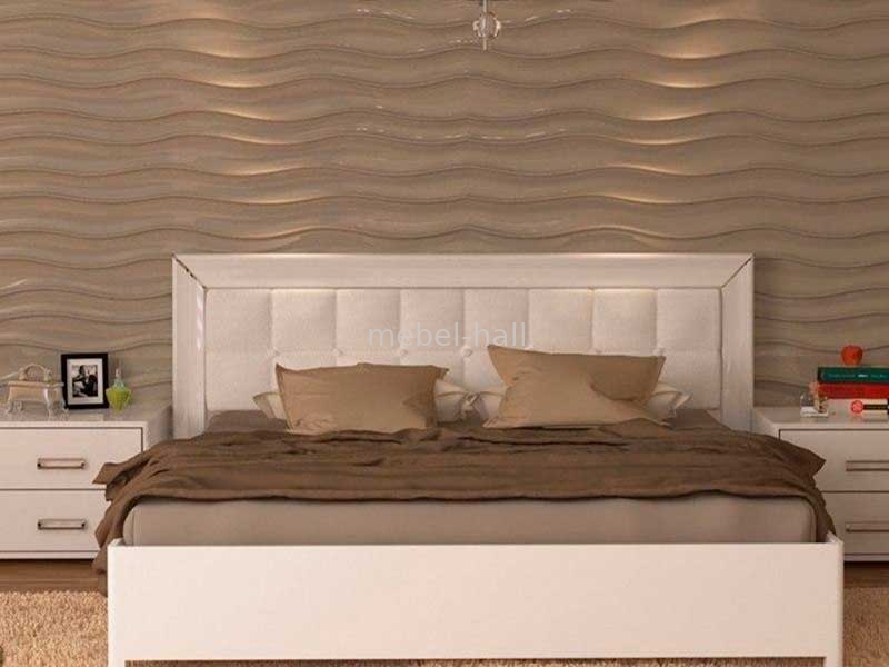 Мебель выполнена в современном стиле от украинской мебельной фабрики MiroMark. Органичный дизайн, чисто белый цвет, мягкое изголовье, помогут оформить стильный интерьер спальной комнаты.