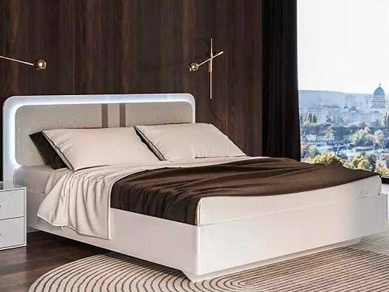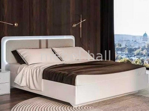 Кровать двуспальная 160х200 см Белладжио MiroMark с мягким изголовьем ДСП Белый Глянец / Белый