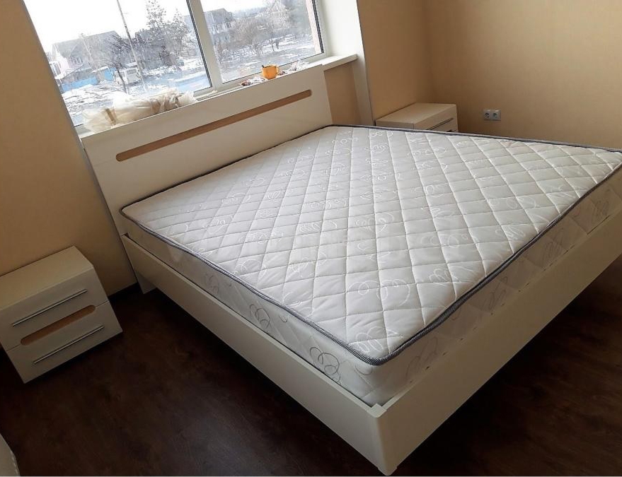 Кровать необходимо дополнить основанием под матрас - ламелями (в стоимость кровати не входит). Каркас под матрас для кровати Вы можете подобрать на нашем сайте!