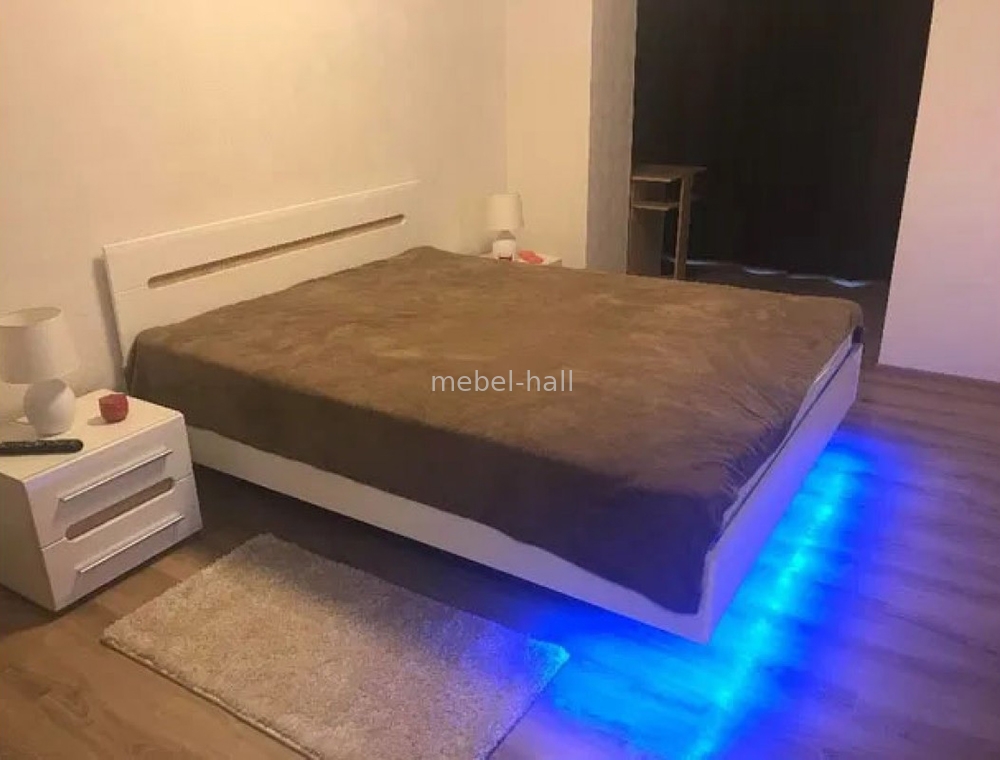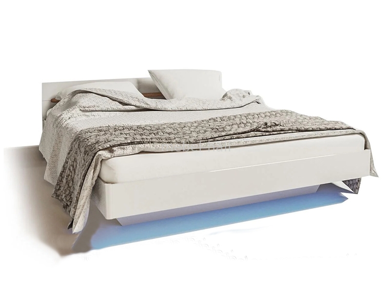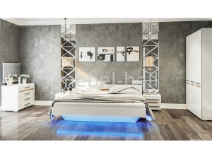 стильная, воплощающая в себе всю красоту и сдержанность простых линий и форм. Выпускается в эффектном сочетании цветов: корпус белый, фасад белый глянец с контрастными вставками дуб сонома. Сияющие белоснежные глянцевые фасады, визуально разделенные на блоки, а также наличие голубой подсветки, зрительно расширяют пространство. Кровать БЬЯНКО украсит самый изысканный интерьер.