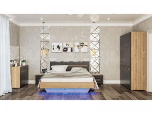 Стильная, воплощающая в себе всю красоту и сдержанность простых линий и форм. Выпускается в эффектном сочетании цветов: корпус дуб артизан, фасад графит с контрастными вставками дуб артизан. Матовый графитовый фасад, визуально разделенный на блоки, а также наличие голубой подсветки, сделают вашу комнату неповторимой. Кровать БЬЯНКО украсит самый изысканный интерьер.