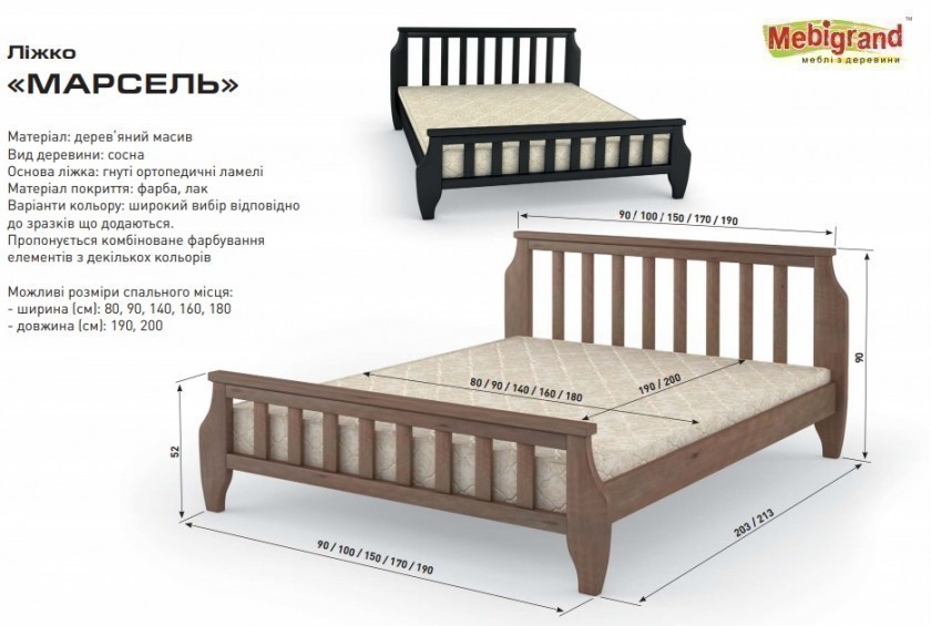 Кровать двуспальная деревянная МАРСЕЛЬ 160х200 Мебигранд