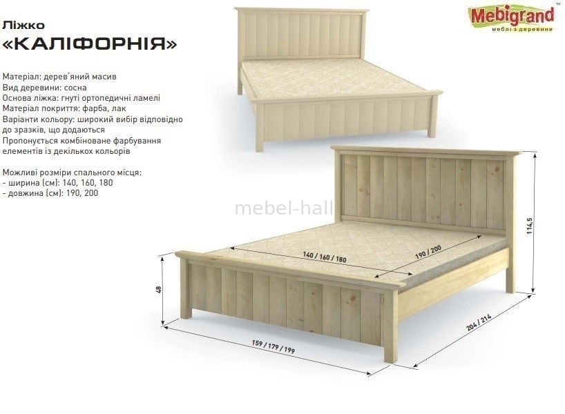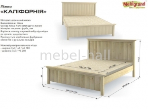 Кровать двуспальная деревянная КАЛИФОРНИЯ 180х200 Мебигранд