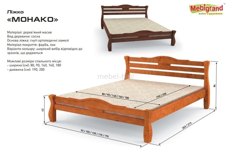 Кровать двуспальная из натурального дерева МОНАКО Мебигранд 140х200 см ортопедические ламели в комплекте