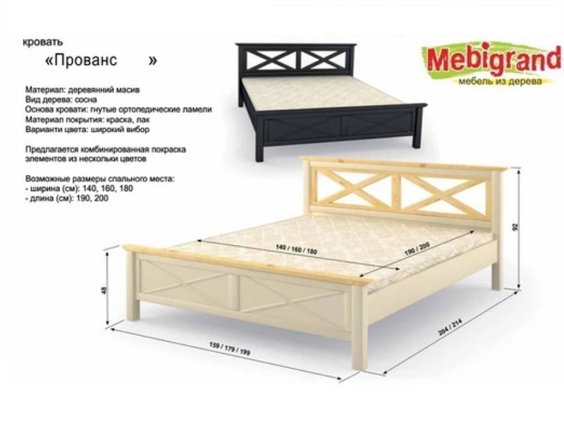 Двуспальная кровать из натурального дерева ПРОВАНС Мебигранд 140х200 см ортопедические ламели в комплекте