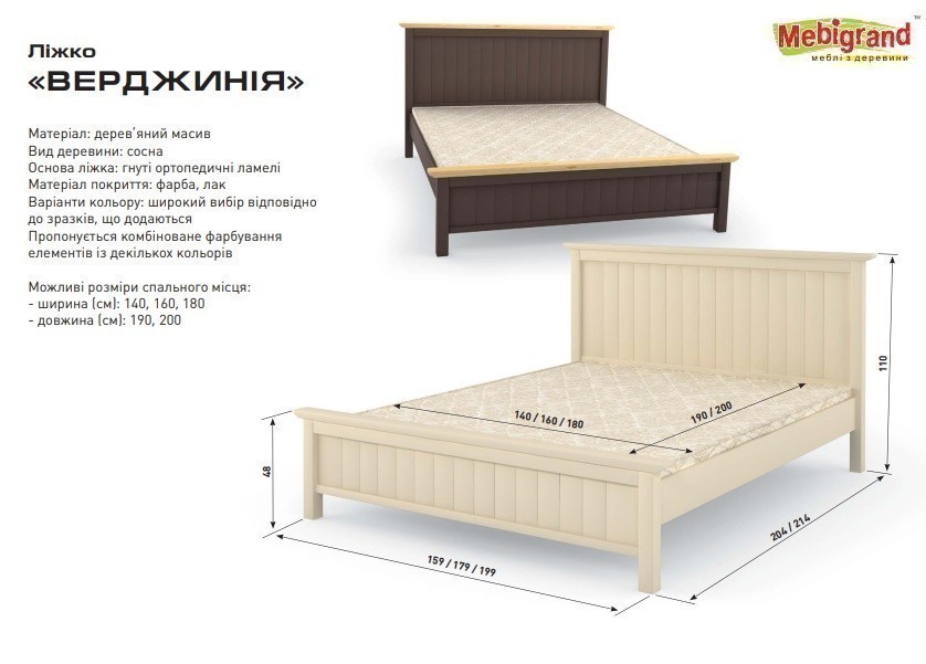 Кровать деревянная из массива сосны модель ВЕРДЖИНИЯ МЕБИГРАНД