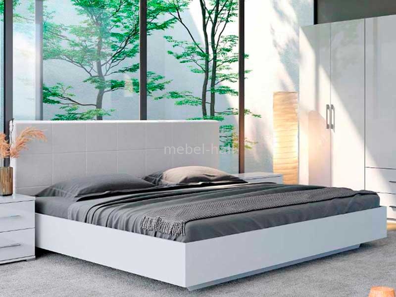 Кровать двуспальная 160х200 см с мягким изголовьем для спальни Фемили MiroMark ДСП Белый Глянец / Белый