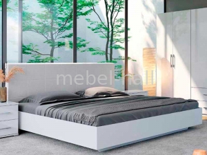 Кровать двуспальная 180х200 см с мягким изголовьем и подъемным механизмом для спальни Фемили MiroMark ДСП Белый Глянец / Белый