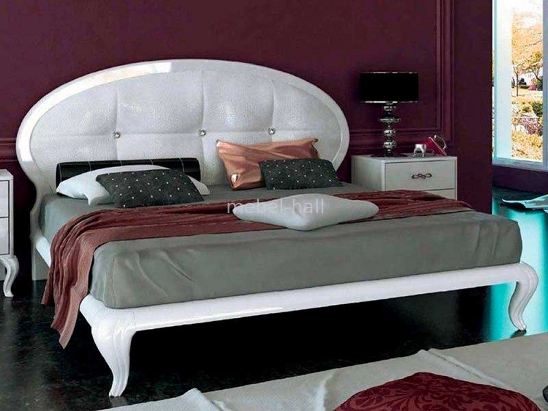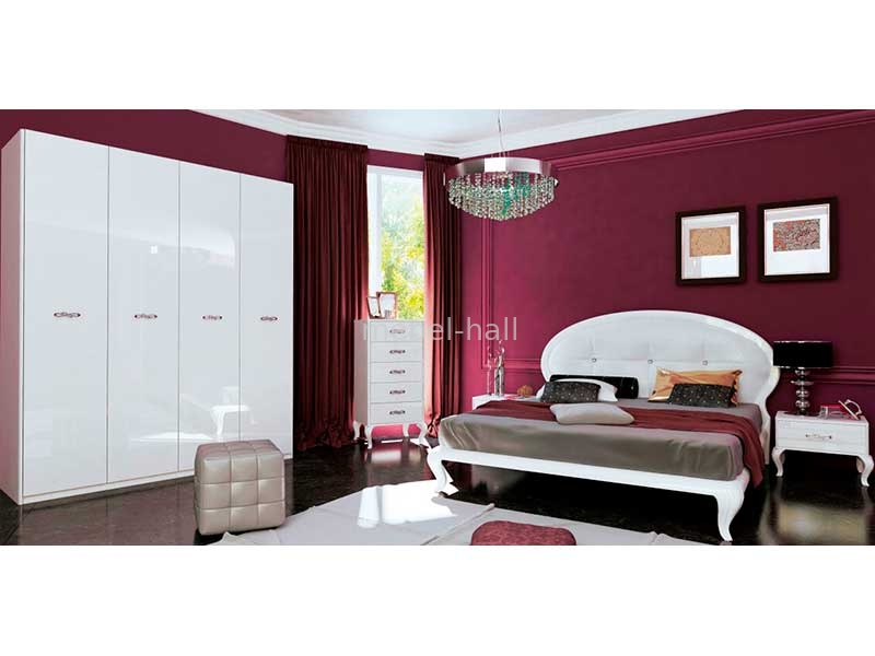 Модульная мебель для спальни Империя в классическом стиле в белоснежном глянцевом цвете от украинской мебельной фабрики MiroMark. Изысканный дизайн, утонченный стиль, высокое качество исполнения, элегантные изогнутые ножки, кровать с мягким изголовьем, помогут оформить стильный интерьер спальной комнаты.