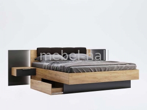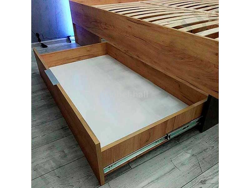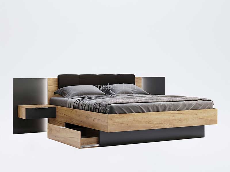 Кровать двуспальная 180х200 см с мягким изголовьем и выдвижными ящиками для спальни Луна MiroMark ДСП Дуб Крафт / Мат Лава