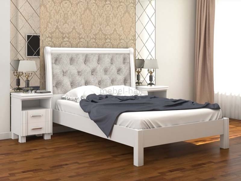 Каркас кровати изготовлен из массива дерева хвойных пород. Изголовье кровати изготовлено из массива сосны, обрамлённые деревянными элементами из хвойных пород дерева, обработанные антисептическими грунтами и окрашены высококачественными лакокрасочными материалами (ТМ «Тиккурила», Финляндия).