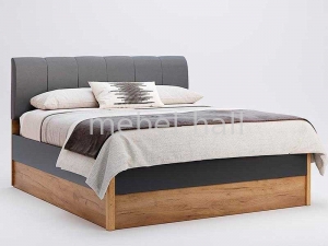 Кровать двуспальная 160х200 см с мягким изголовьем и выдвижными ящиками для спальни Рамона MiroMark ДСП Дуб Крафт / Мат Лава
