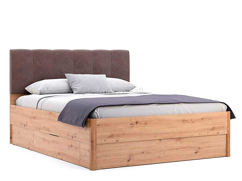 Кровать двуспальная 160х200 см с мягким изголовьем и выдвижными шухлядами для спальни Тедди MiroMark ДСП Дуб Артизан