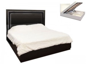 Двуспальная кровать с подъемным механизмом ЭКСТАЗА НОВАЯ ДСП Черный глянец