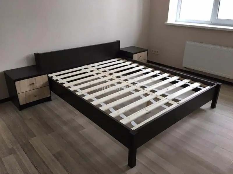 Каркас кровати выполнен из ламинированного ДСП в цвете Венге Темный.
