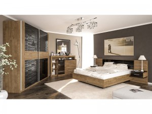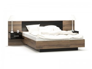 Современная кровать с оригинальным решением изголовья из ДСП с выборочным лакированием и наличием встроенных прикроватных тумб. Направляющие на ящиках телескопические, что гарантирует плавность при выдвижении и долговечность. Характеризуется правильными геометрическими формами, прямыми линиями, простым и лаконичным исполнением, который создаст уют и крепкий сон в вашей спальне.
