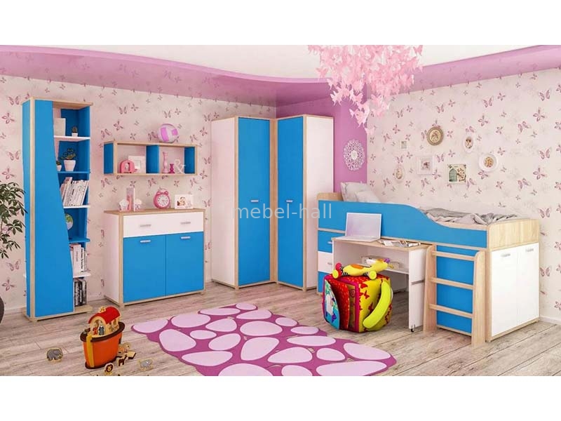 Кровать горка Лео - это изделие Детской модульной системы Лео Мебель Сервис Синий, каждый элемент этой системы Вы можете подобрать отдельно.