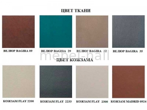 | Цвет обивки: | Велюр Bagira 35, Велюр Bagira 32, Велюр Bagira 29, Велюр Bagira 09, Кожзам Fly 2233, Кожзам Fly 2200, Кожзам Fly 2300, Кожзам Madrid 0924 |