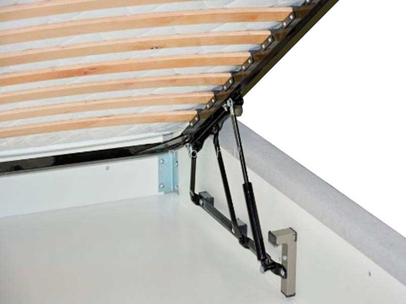 Кровать Каролина оснащена ортопедическим вкладом на металлическом каркасе с подъемным механизмом. Каркас крепится подъемным механизмом газлифт на 120 кг к конструкции корпуса, что обеспечит бесшумное и легкое поднятие спального основания.