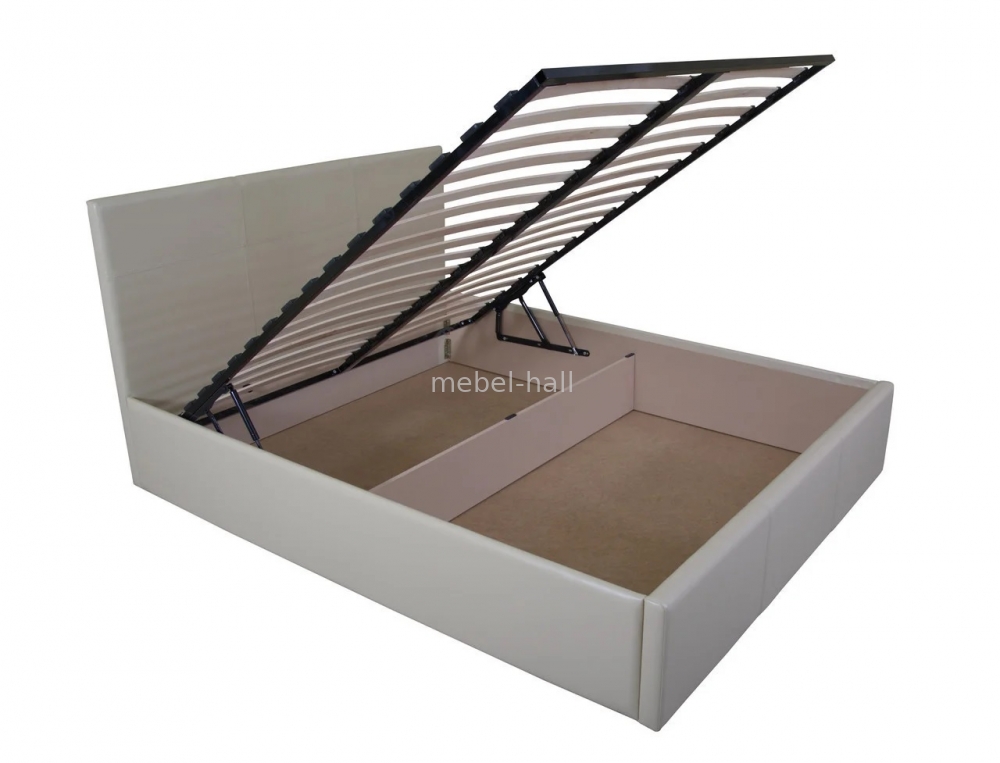 Кровать Каролина оснащена ортопедическим вкладом на металлическом каркасе с подъемным механизмом. Каркас крепится подъемным механизмом газлифт на 120 кг к конструкции корпуса, что обеспечит бесшумное и легкое поднятие спального основания.
