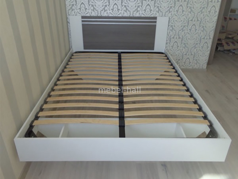Кровать необходимо дополнить основанием под матрас - ламелями (в стоимость кровати не входит). Каркас под матрас для кровати Вы можете подобрать на нашем сайте!