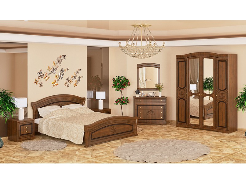Классическая кровать с оригинальным решением изголовья и изножья из МДФ с эффектом патинирования (старения). Характеризуется правильными геометрическими формами, прямыми линиями, простым и лаконичным исполнением, который создаст уют и крепкий сон в вашей спальне.