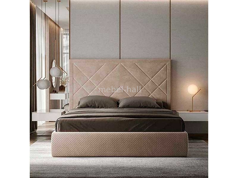 Кровать мягкая двуспальная Вива с подъемным механизмом MiroMark 180х200 см Светло-бежевый велюр