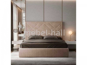 Кровать выполнена из ДСП, оббитого износоустойчивым велюром светло-бежевого цвета.