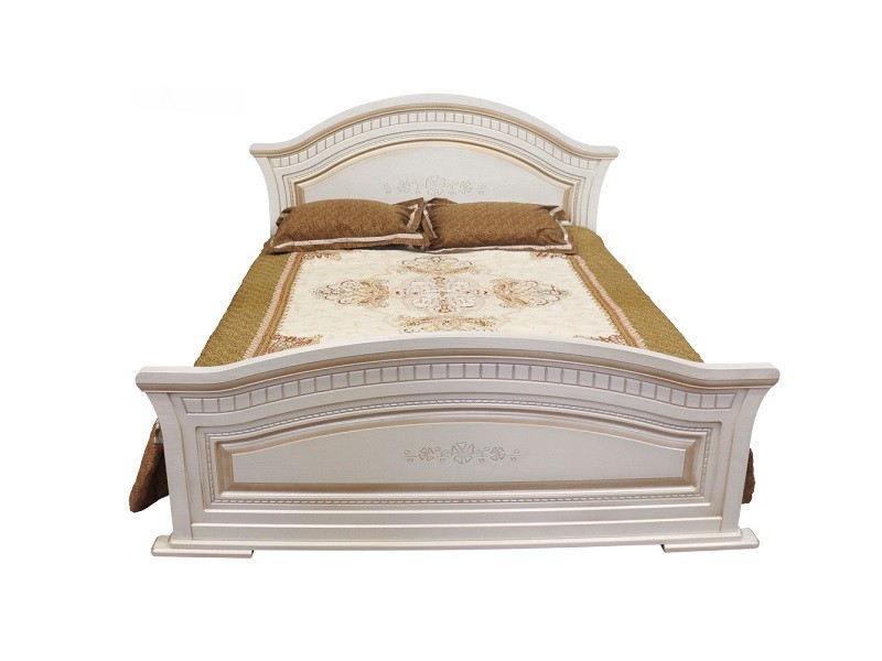 Изголовье и изножье: из МДФ в цвете Белое Дерево + Декоративная Резьба + Патина Золото.
