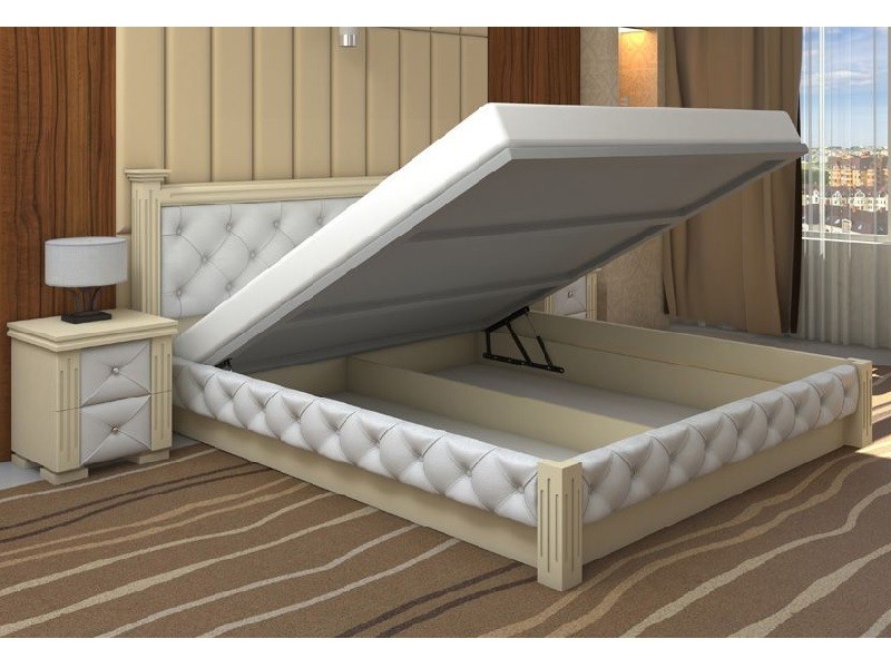 Кровать Александра ДаКас с подъемным механизмом мягким изголовьем и деревянной отделкой