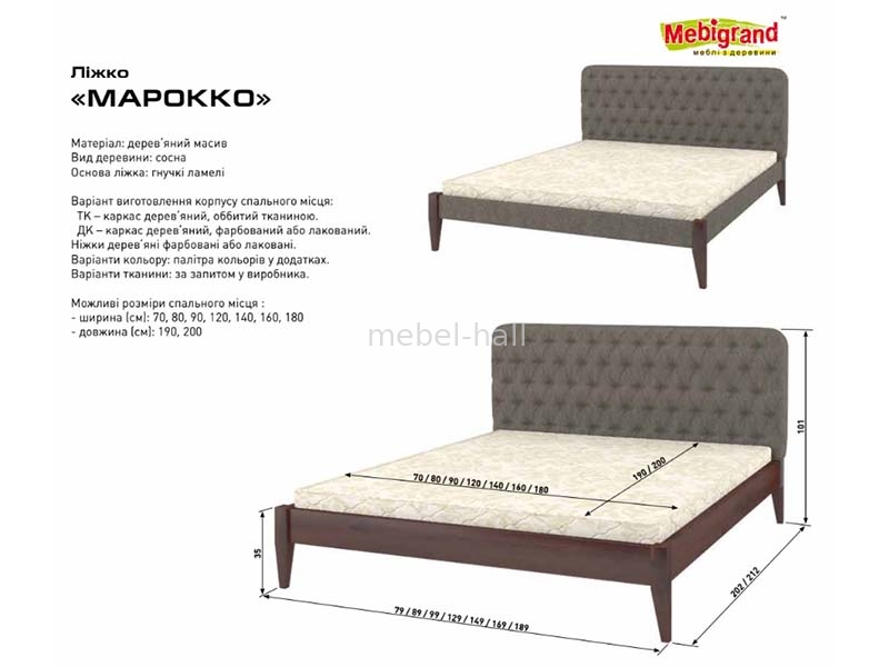 Односпальная кровать из натурального дерева Марокко 70х200 Мебигранд ортопедические ламели в комплекте
