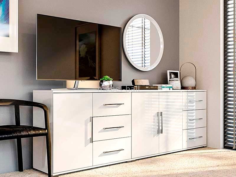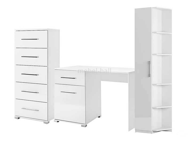 Мебель выполнена в современном стиле от украинской мебельной фабрики MiroMark. Органичный дизайн в чисто белом цвете.