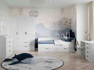 Мебель выполнена в современном стиле с белоснежными глянцевыми фасадами от украинской мебельной фабрики Миромарк. Привлекательный дизайн, новейшие тенденции, лаконичность, функциональность, качественные материалы и фурнитура, помогут легко оформить стильный интерьер комнаты. Кровать с выдвижными шухлядами увеличит пространство для хранения вещей.